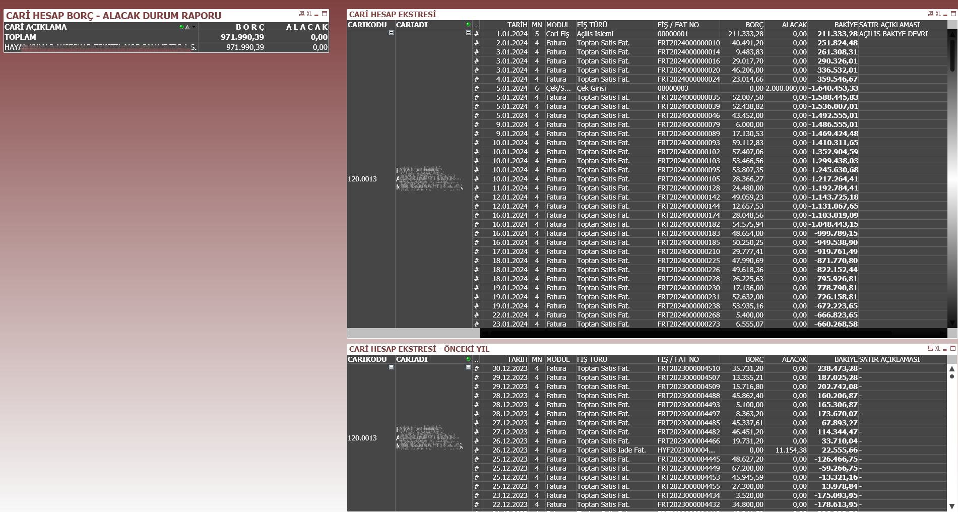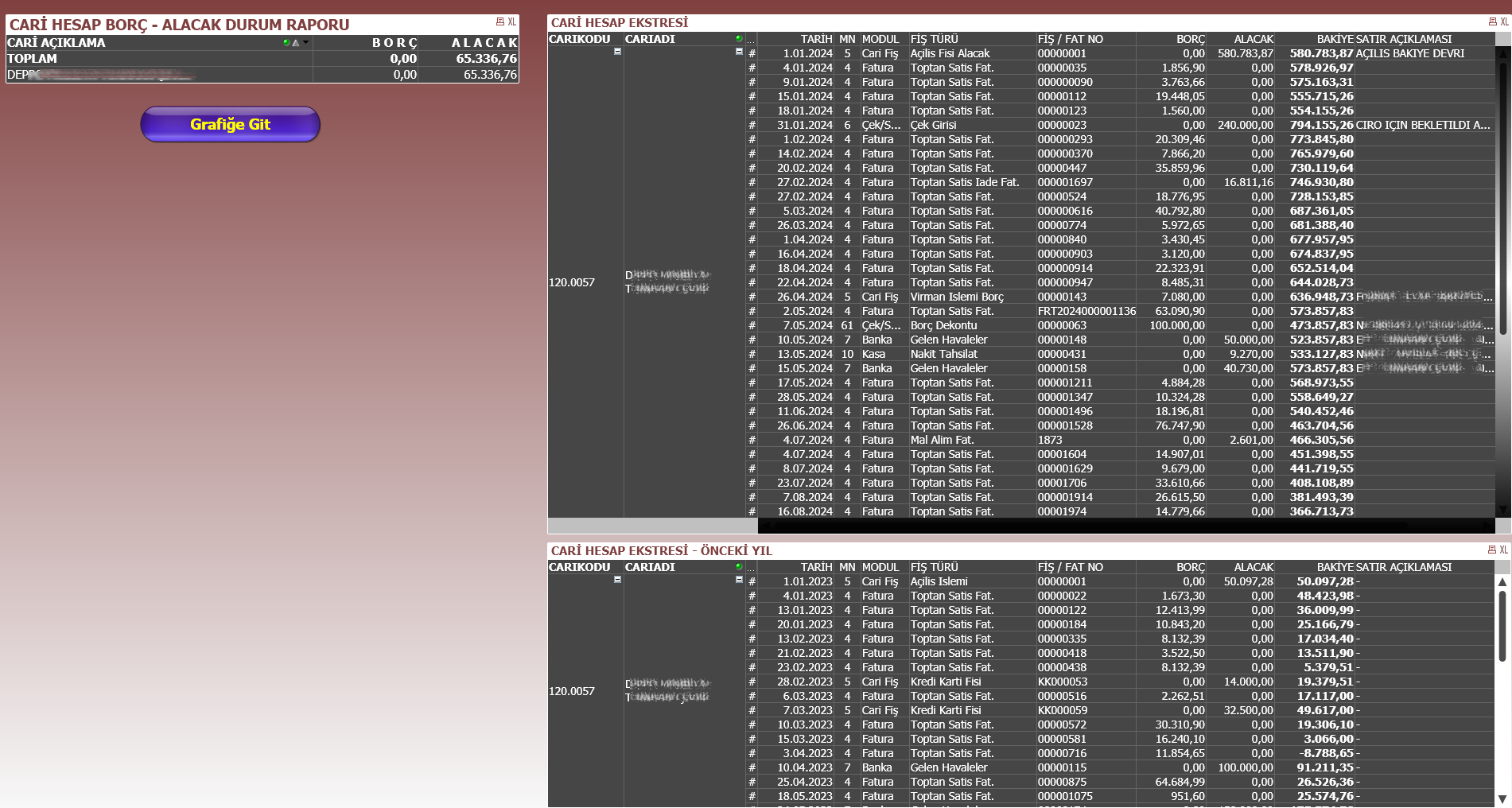 Uygulama Adı : Cari Hesap Hareketleri Analiz Raporu