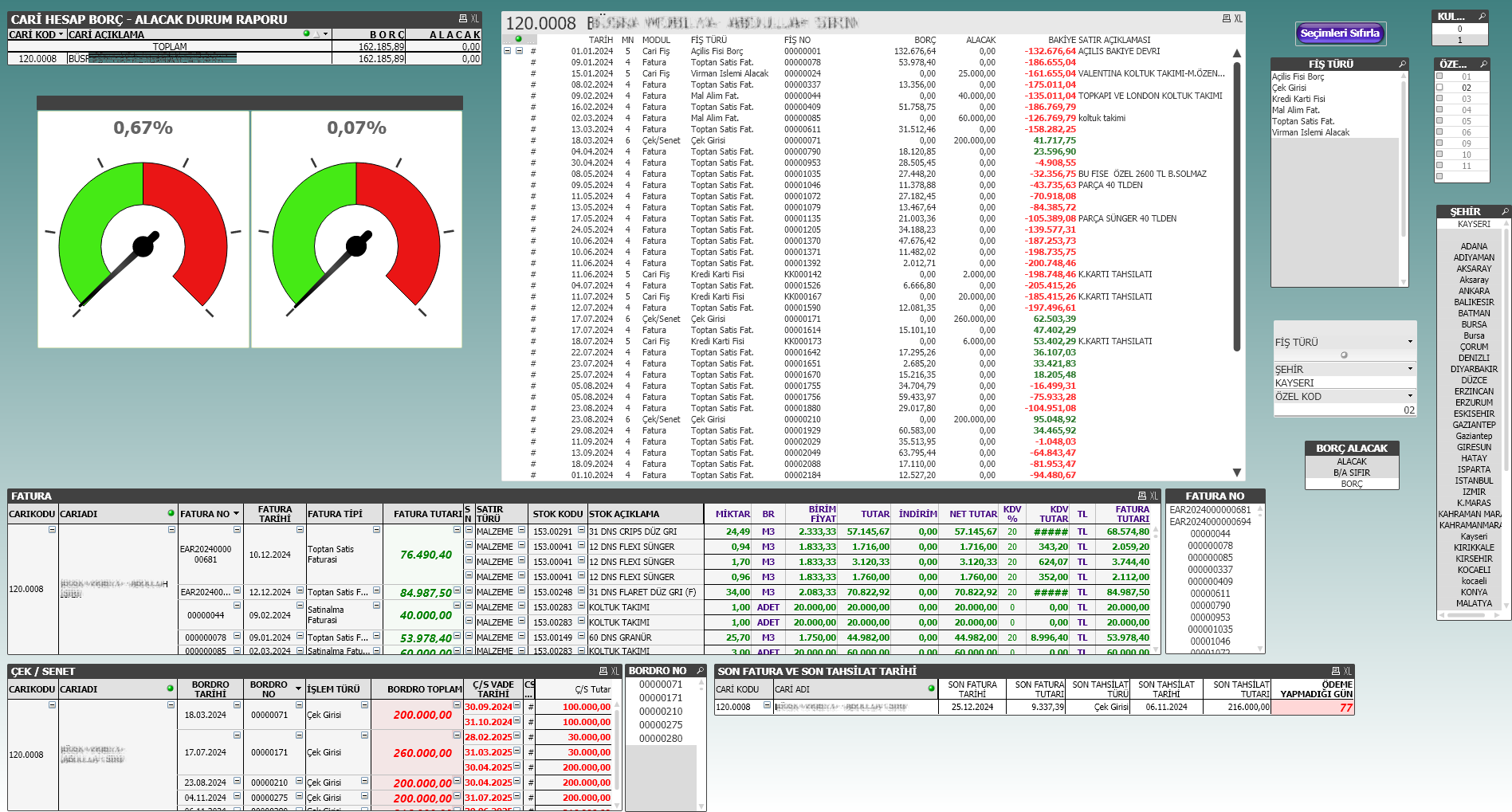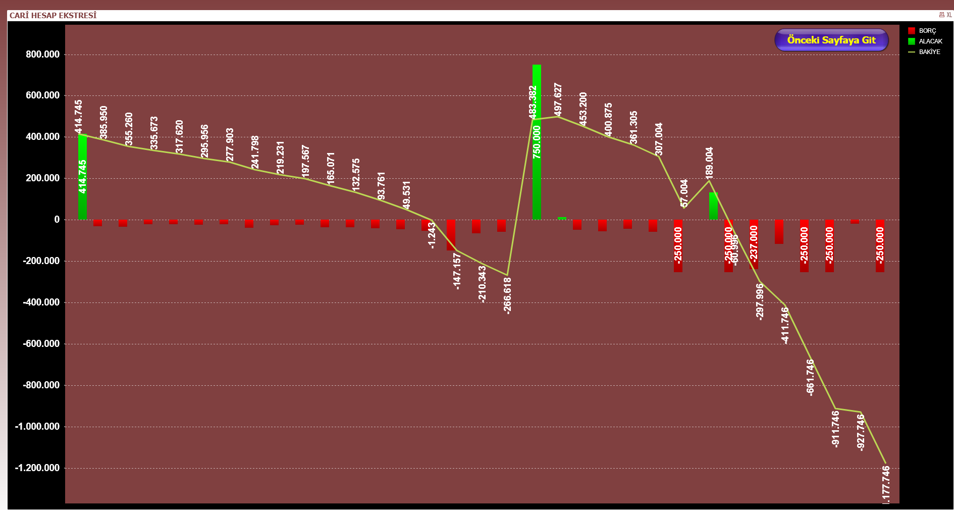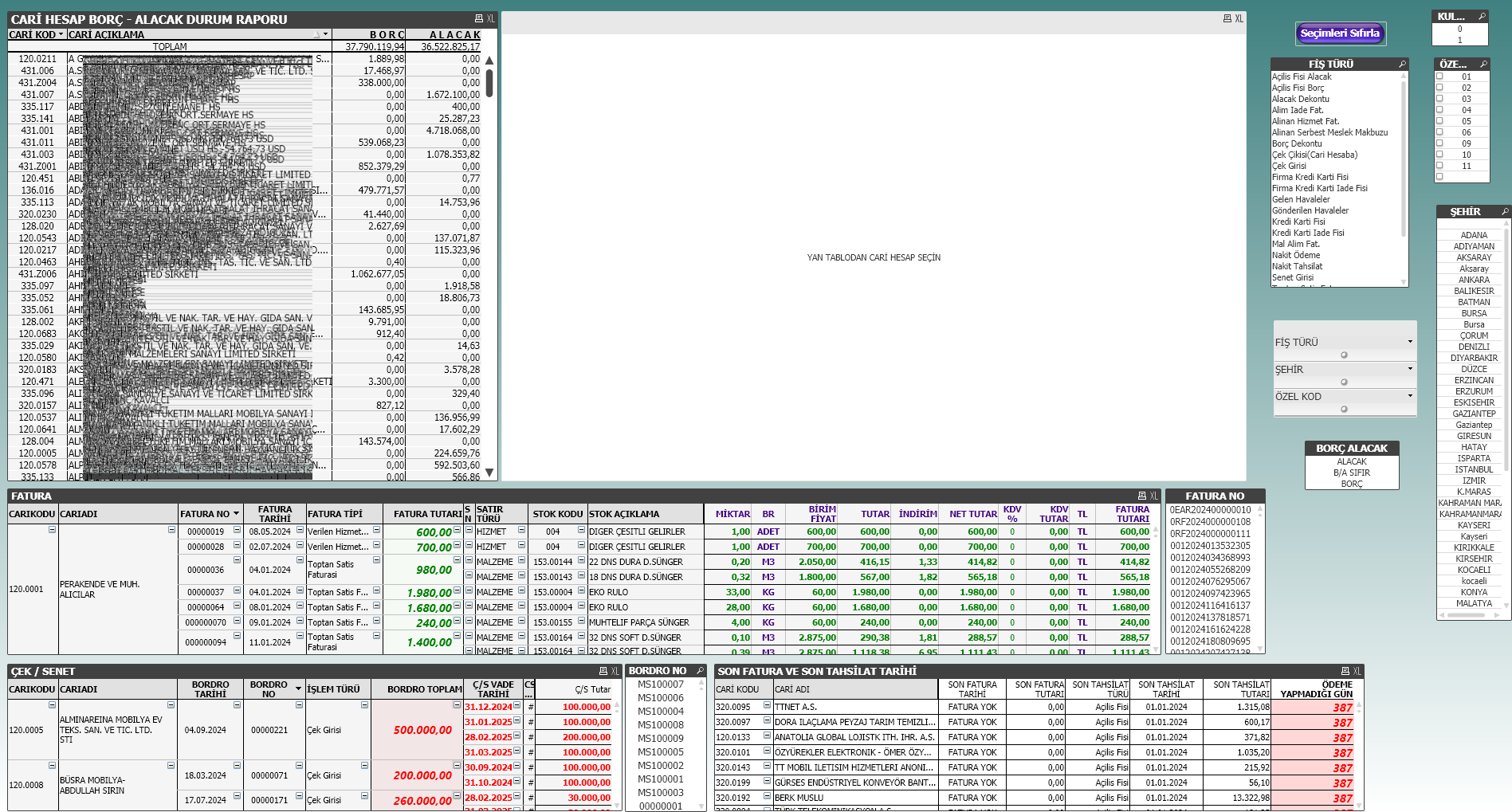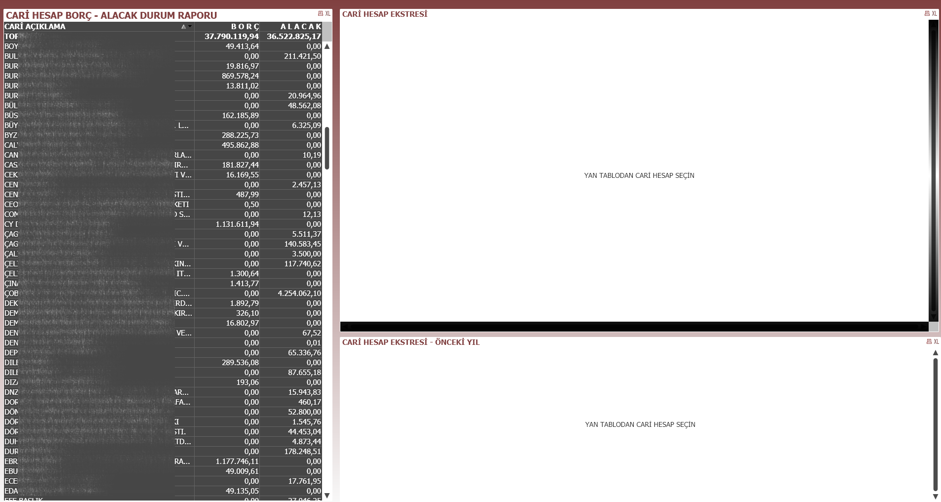 Bütün carilerin BORÇ/ALACAK durumunu görebiliriz